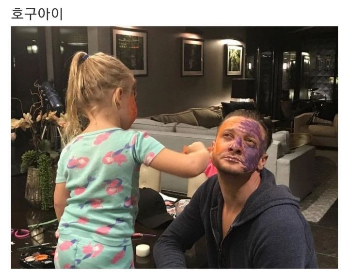 딸래미 스케치북으로 얼굴을 다 내주는 호크아이