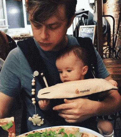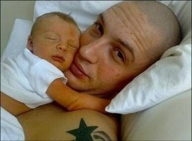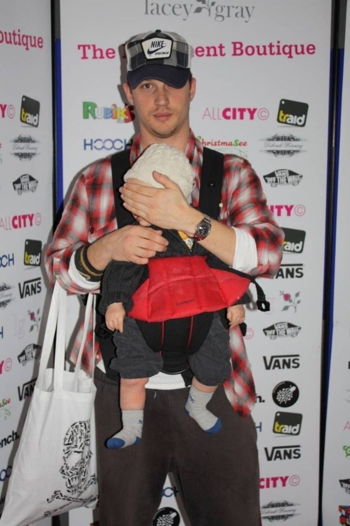 아기띠 매고 에코백 들고 스케줄 간 톰 하디
