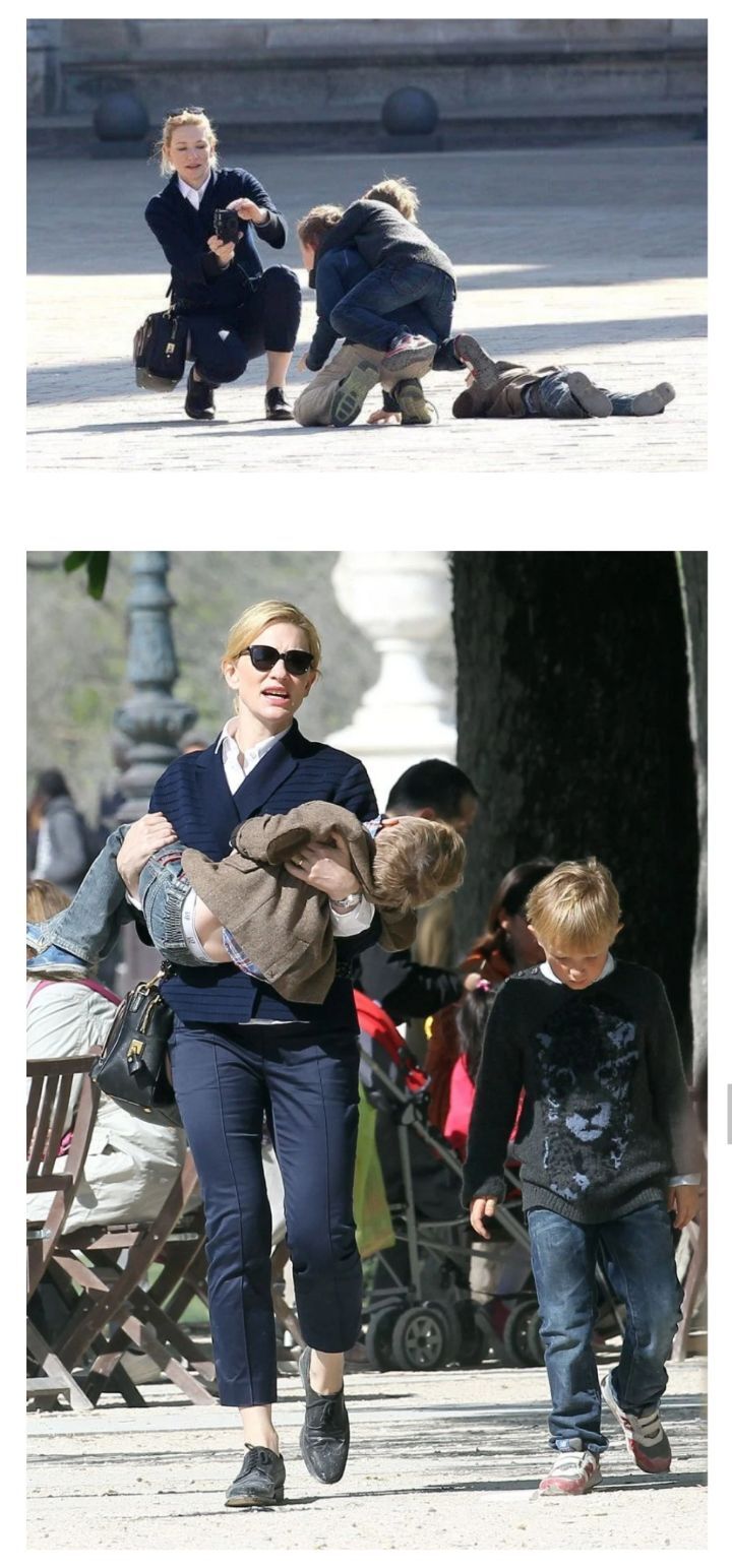 까부는 아들램들 사진 남기고 안아서 데려가는 케이트 블란쳇