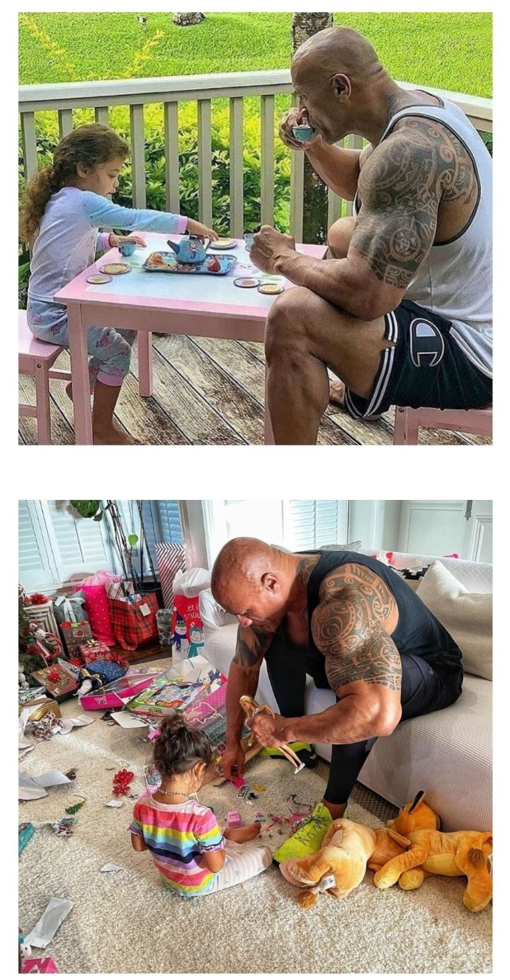 딸랑구랑 인형놀이하는 드웨인 존슨
