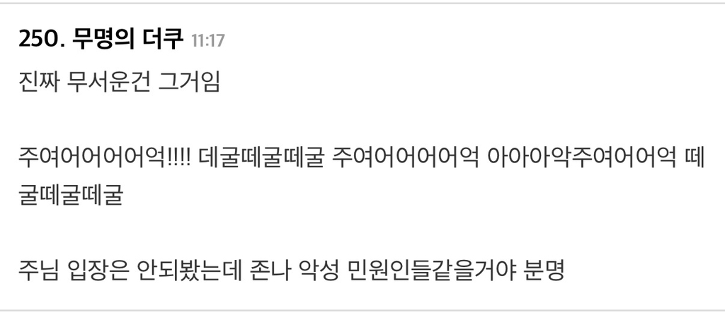 작성자들깨삼계탕 작성시간 26.01.12 악성민원인 ㅋㅋㅋㅋㅋㅋㅋㅋ 아 ㅋㅋㅋㅋㅋ 젤 싫은게 저 헛소리하는거일 줄 알았는데도 표현이 존나 웃김 ㅋㅋㅋㅋㅋㅋㅋ