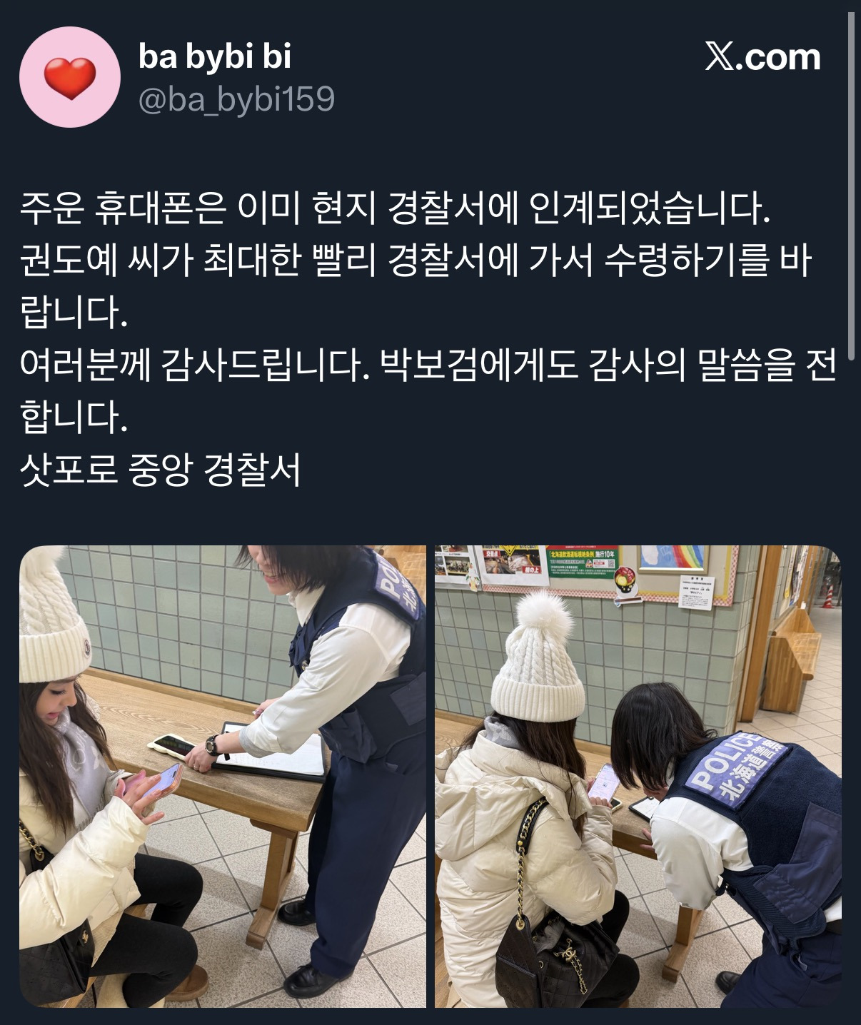 중국인이 일본 삿포로에서 휴대폰을 주웠는데
