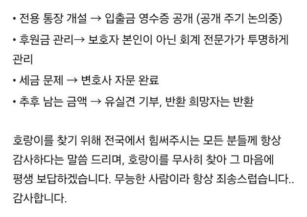 견주는 톡방에 후원 계좌를 공개하면서 회계사와 세무사 자문을 받았다고 강조해왔음!!!