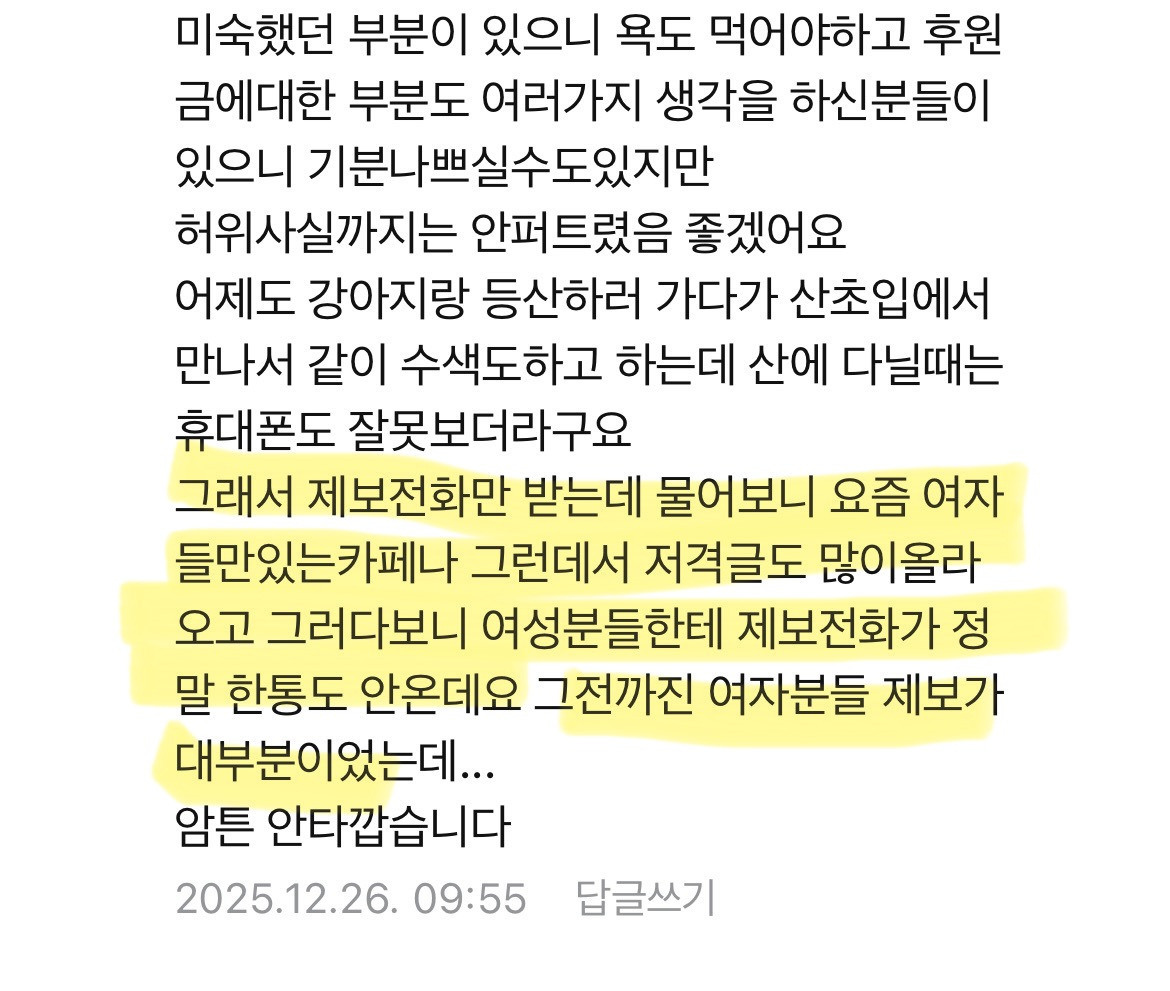 이젠 여자들한테 제보도 안 온다고 하더라 ㅠ