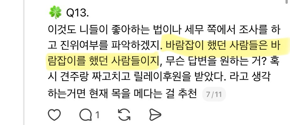 무려 제기된 21개의 의혹을 견주대신 피드백해주고선 하루만에 글을 삭제했어 ㅠㅠ