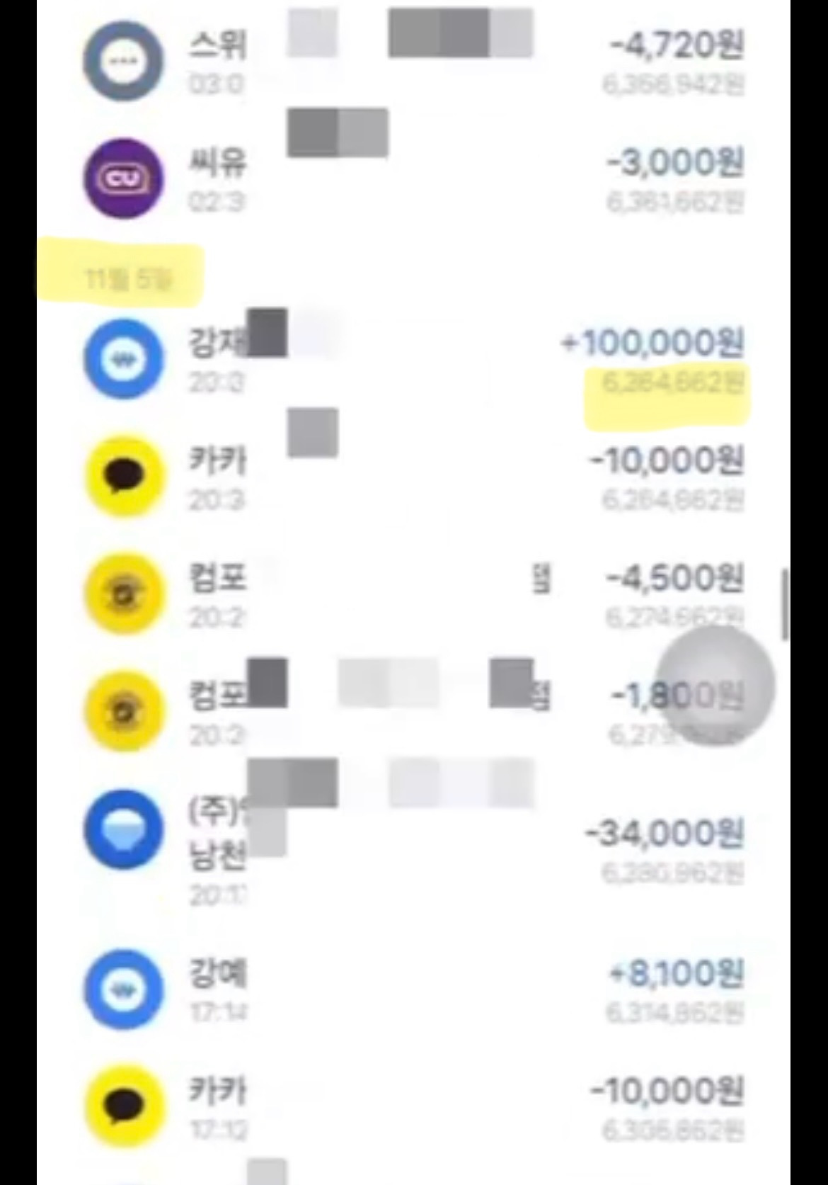 11월 5일경 600만원 가량의 돈이 있었음.