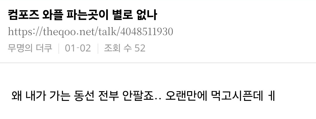 작성자재수열차 작성시간 26.01.12 에바 왜 사라져 우리 동네는 아직 하는데 존맛이야 주기적으로 사먹음