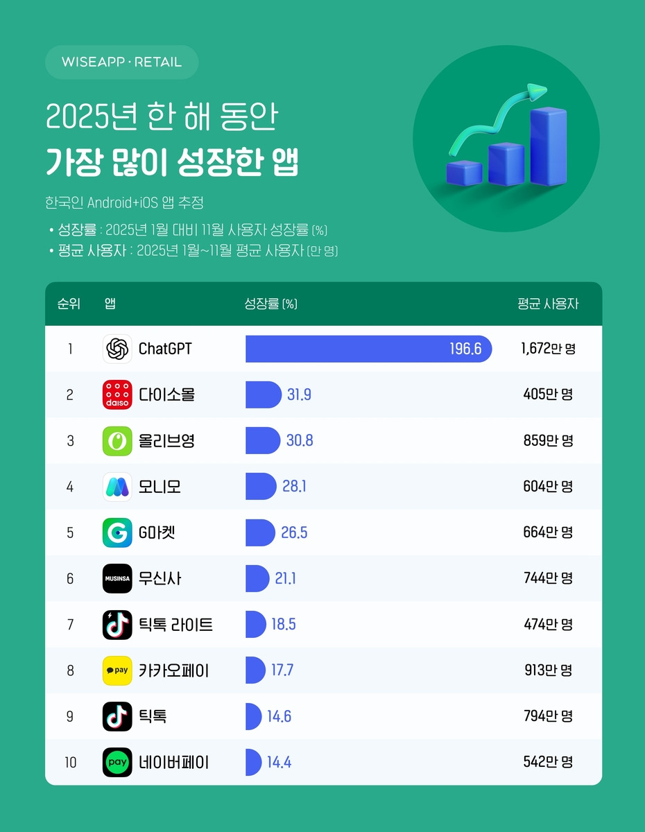 [스크랩] [흥미돋]2025년 한해 가장 많이 성장한 앱 TOP10 작성자aoalar|작성시간26.01.11|조회수13,025 목록 댓글 22 글자크기 작게가 글자크기 크게가 출처: https://x.com/yonhaptweet/status/1998618679664324919 다음검색 스크랩 원문 : *여성시대* 차분한 20대들의 알흠다운 공간 현재 게시글 추가 기능 열기 북마크 공유하기 신고 센터로 신고 댓글 댓글 22 댓글쓰기 답글쓰기 댓글 리스트 작성자레알 이재명스명스한 상황 | 작성시간 26.01.11 모니모는 뭐하는앤데? 답댓글 작성자후훟후 | 작성시간 26.01.11 삼카쓰면 선결제나 기타 기능들 저 어플 깔아야만 쓸수잇어서 거의 강제임.. 삼성연관앱. 삼성화재나 삼성카드 등등 작성자슈면과다세요 | 작성시간 26.01.11 오 지마켓 많이 늘엇나보네..? 작성자얼그레이버블티 | 작성시간 26.01.11 모니모 미친 니들이 강제로 쓰게했잖아 렉 존나 걸리는게 작성자다람이오둥이 | 작성시간 26.01.12 모니모 ㅅㅂ 댓글 전체보기