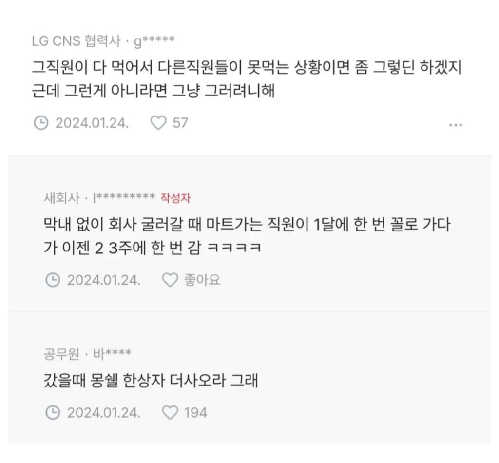 작성자피나치공함머거보자 작성시간 26.01.11 신입땐 저정도는 먹어줘여해