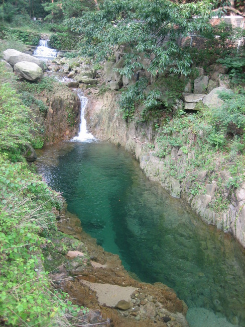 계곡물이 그냥 녹색 희끄무레한 덩어리정도로 보여서