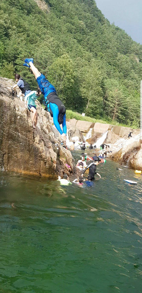 일단 저 정도로 계곡이 깊다 보니깐 계곡에서 다이빙 하는 사람들이 많음