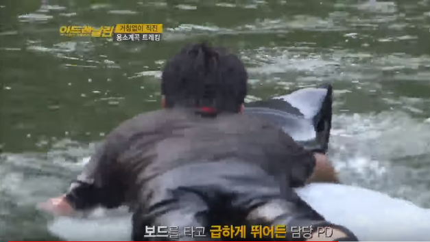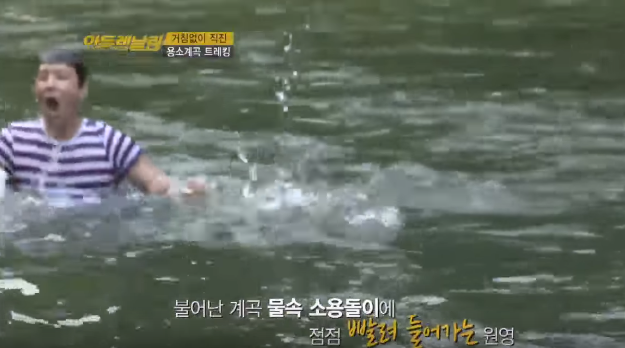 계곡으로 입수할때 신나서 바위 위에서 뛰어내리는 상황이 제일 많은데