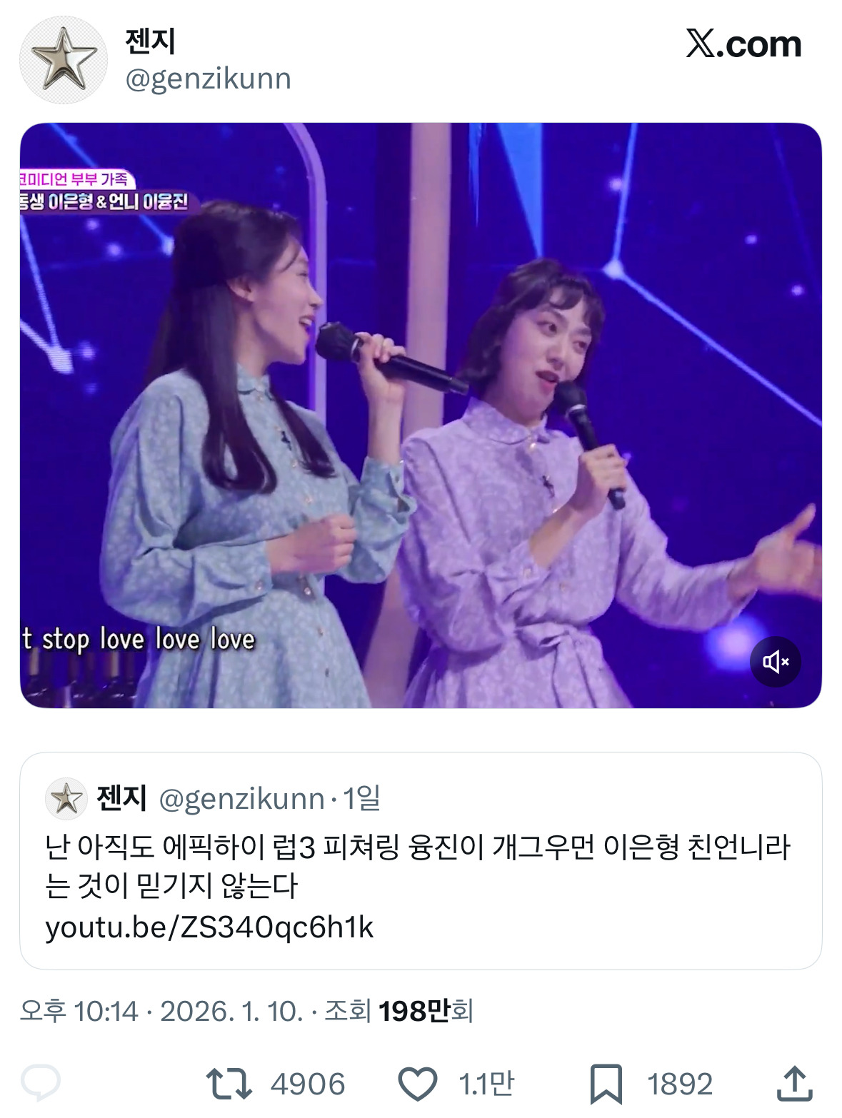 [흥미돋]난 아직도 에픽하이 럽럽럽 피쳐링한 분이 개그우먼 이은형 친언니라는 것이 믿기지 않는다.x 작성자자경이친구|작성시간26.01.12|조회수71,274 목록 댓글 41 글자크기 작게가 글자크기 크게가 출처: https://x.com/genzikunn/status/2009977265359299028영상 50초부터 https://youtu.be/Fo5ScnSa044캐스커 융진 다음검색 현재 게시글 추가 기능 열기 북마크 공유하기 신고 센터로 신고 댓글 댓글 41 댓글쓰기 답글쓰기 댓글 리스트 작성자전국송곳팔꿈치학회 | 작성시간 26.01.12 오 작성자모모@ | 작성시간 26.01.12 오옹?! 하나도 안 닮았어 ㅋㅋㅋㅋㅋ 목소리 넘 좋다 작성자Bruno Fernandes | 작성시간 26.01.12 우와 작성자비구름뭉게뭉게 | 작성시간 26.01.12 우와 자매가 진짜 하나도 안닮았다ㅋㅋㅋㅋㅋㅋ신기 작성자흥치풍야 | 작성시간 26.01.12 헐 댓글 전체보기