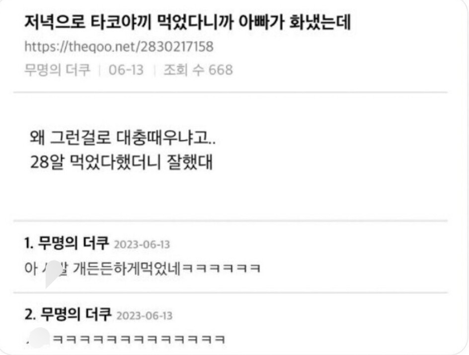 [스크랩] [기타]저녁으로 타코야끼 먹었다고 아빠한테 혼난 사람 작성자오리걸음|작성시간26.01.12|조회수65,621 목록 댓글 15 글자크기 작게가 글자크기 크게가 다음검색 스크랩 원문 : 樂soccer 현재 게시글 추가 기능 열기 북마크 공유하기 신고 센터로 신고 댓글 댓글 15 댓글쓰기 답글쓰기 댓글 리스트 작성자끄망 | 작성시간 26.01.12 28알ㅋㄱㄱㄱㄱㄱㄱㄱㄱㄱㄱㄱㄱ 작성자이도저도 아닌애 | 작성시간 26.01.12 문어 한마리 다 묵제? 작성자갈비찜산적동태전 | 작성시간 26.01.12 아 개웃겨 작성자Happyy | 작성시간 26.01.12 문어 한마리 다묵제? 작성자우울해하지말자? | 작성시간 26.01.12 잘했대 ㅋㅋㅋㅋㅋㅋ 댓글 전체보기