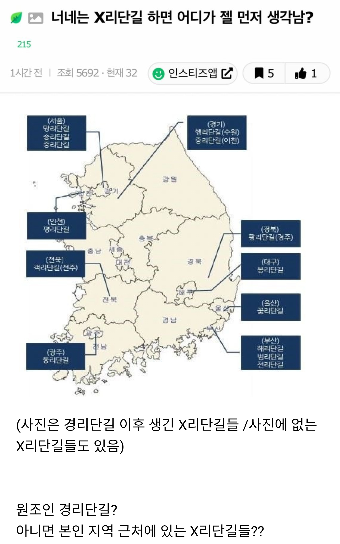 [흥미돋]ㅇ리단길 하면 어디가 젤 먼저 생각남? 작성자헤그리|작성시간26.01.12|조회수11,571 목록 댓글 132 글자크기 작게가 글자크기 크게가 출처: https://theqoo.net/square/4057492721 다음검색 현재 게시글 추가 기능 열기 북마크 공유하기 신고 센터로 신고 댓글 댓글 132 댓글쓰기 답글쓰기 댓글 리스트 작성자고급지게놀아 | 작성시간 26.01.12 황 작성자Snowman | 작성시간 26.01.12 경리단길 작성자뭔가부족하거든요 | 작성시간 26.01.12 송 작성자아이유짱 | 작성시간 26.01.12 경 작성자걸음 | 작성시간 26.01.13 경 망 댓글 전체보기