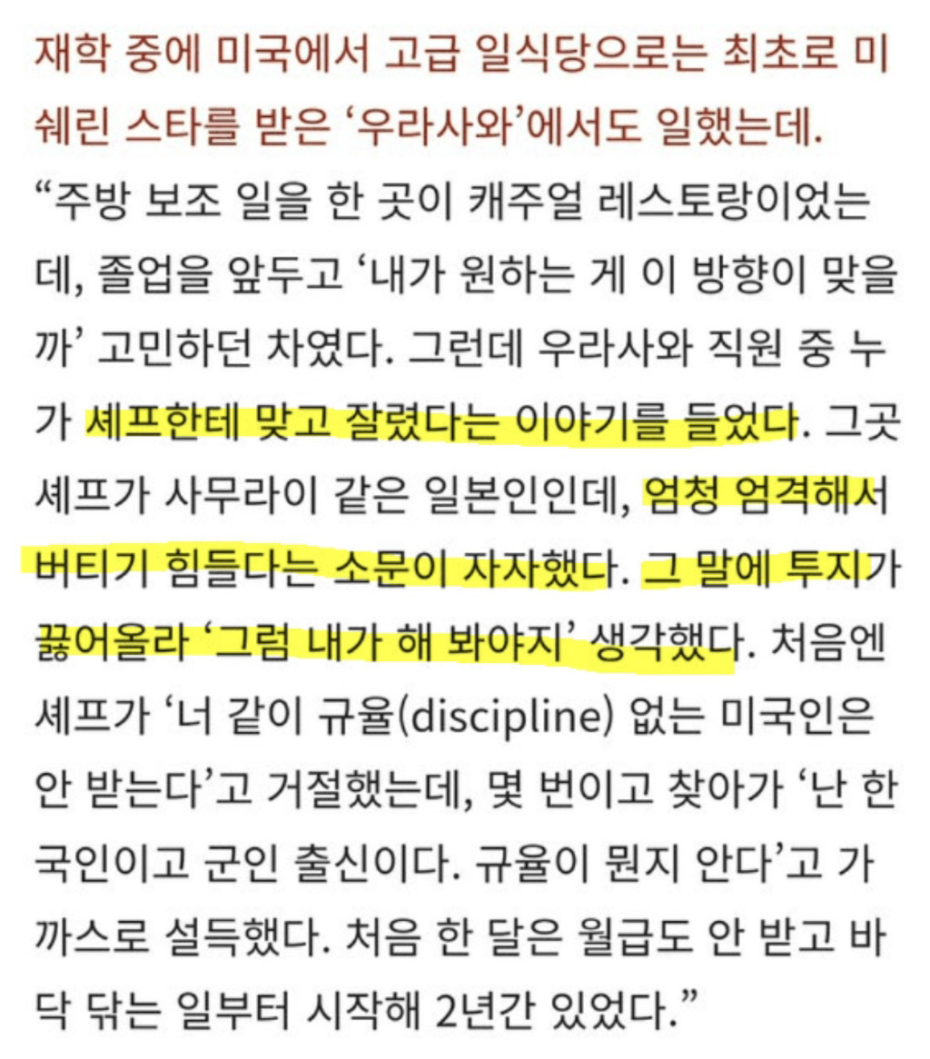 24세에 주방 보조로 커리어를 시작해서