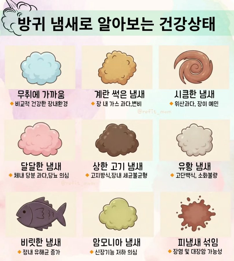 작성자날으는콩이 작성시간 26.01.12 보통 냄새 안나는제 가끔 치킨무 냄새 날때가 있음.. 이건 뭔냄새일까.. 시큼인가