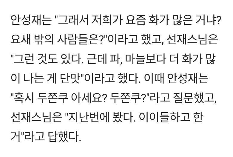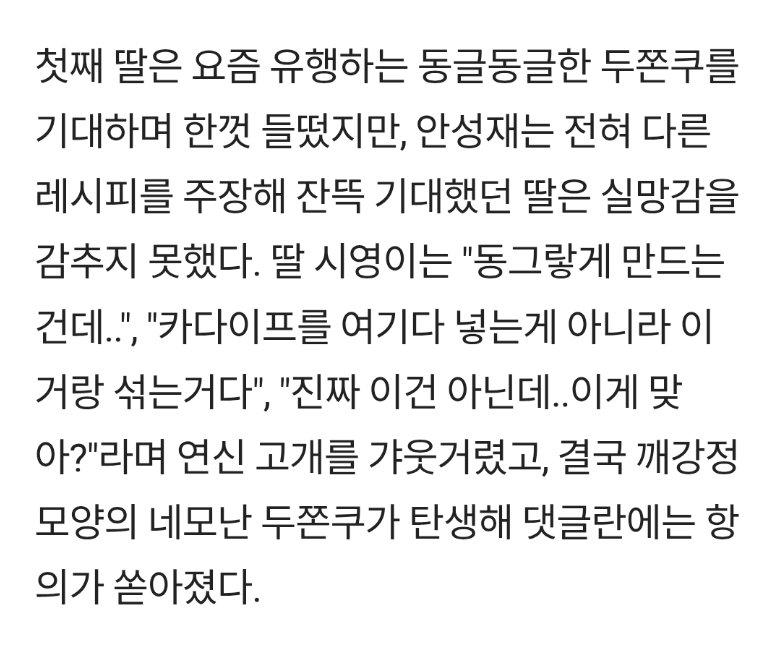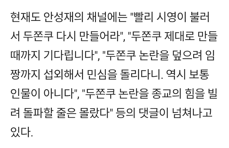 [스크랩] [흥미돋]안성재, 얼마나 억울하면..선재스님 붙잡고 '두쫀쿠' 사건 해명 "너무 달아" 작성자삼두응|작성시간26.01.12|조회수28,323 목록 댓글 35 글자크기 작게가 글자크기 크게가 출처: 여성시대 보닌억울하면 다시 만들어 다음검색 스크랩 원문 : *여성시대* 차분한 20대들의 알흠다운 공간 현재 게시글 추가 기능 열기 북마크 공유하기 신고 센터로 신고 댓글 댓글 35 댓글쓰기 답글쓰기 댓글 리스트 답댓글 작성자제니좋아하는애엄마 | 작성시간 26.01.13 아 ㅋㅋㅋㅋㅋㅋㅋㅋㅋ 작성자PORSCHE | 작성시간 26.01.12 오벌띵킹해서 만든 두쫀쿠? 탈락입니다 작성자스탠포드 석사 | 작성시간 26.01.13 비겁하다 작성자부털킬러 | 작성시간 26.01.13 의도를 중시한다면서요 안성재씨 무슨의도셨죠? 작성자쓰레기는 쓰레기통에 | 작성시간 26.01.13 자비의 시선 뒤에 숨지마라 당당하게 차가운 대중의 시선 앞에서 승부해라 댓글 전체보기