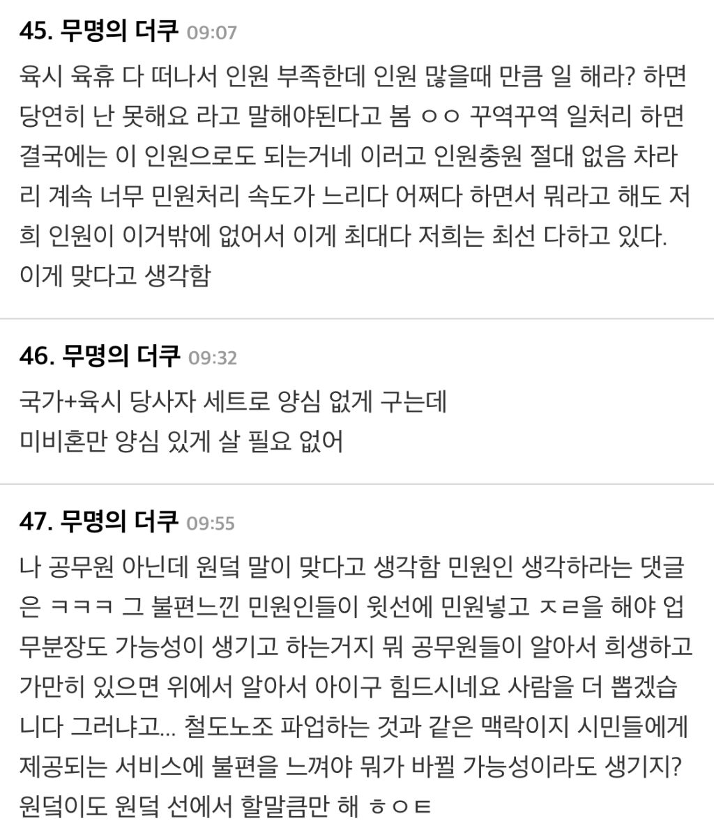 작성자바나냐스플릿 작성시간 26.01.13 미비혼 공무원들 진짜 극한직업이네 육휴 경력인정까지 해주는데 나같아도 그냥 일미룰듯