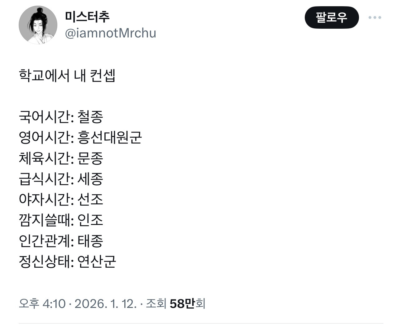 답댓글 작성자셜록홈 작성시간 26.01.13 태종은 다싫어한다는거 아닐까 쓰레기로 본다고 ㅋㅋ