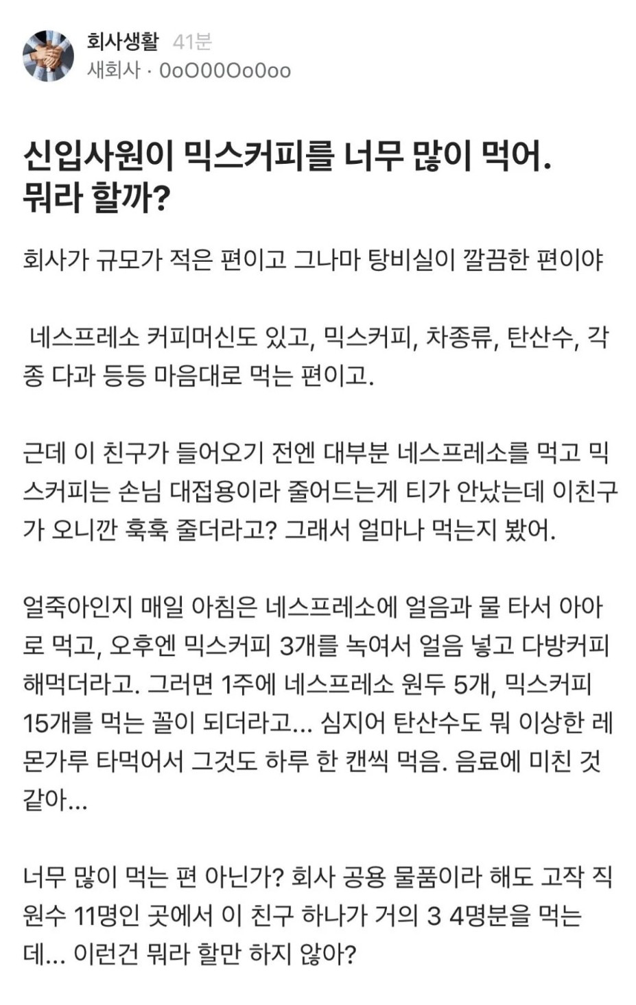 작성자마조히즘근육단련 작성시간 26.01.14 누가보면 하루에 커피 10잔 마시는줄 알겠네 하루에 캡슐하나 스틱 3개 너무 많다 징징.. 어우 쪼잔해