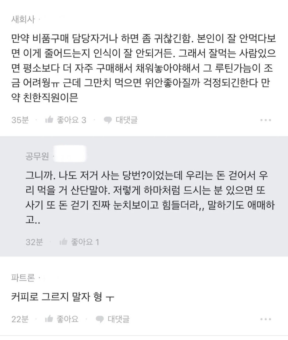 작성자미지근한사람1 작성시간 26.01.14 사비라고?? 사비면 각자 사서 서랍에놓고 먹자