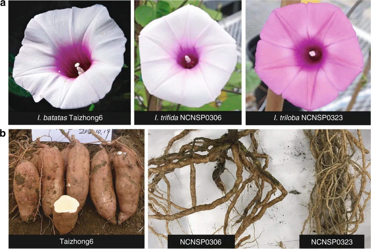고구마의 저런 굵은 뿌리는 옥수수와 같은 다른 작물들과는 다르게 돌연변이나 품종 개량으로 만들어진 게 아니라 수평적 유전자 이동(HGT)으로 만들어졌습니다.
