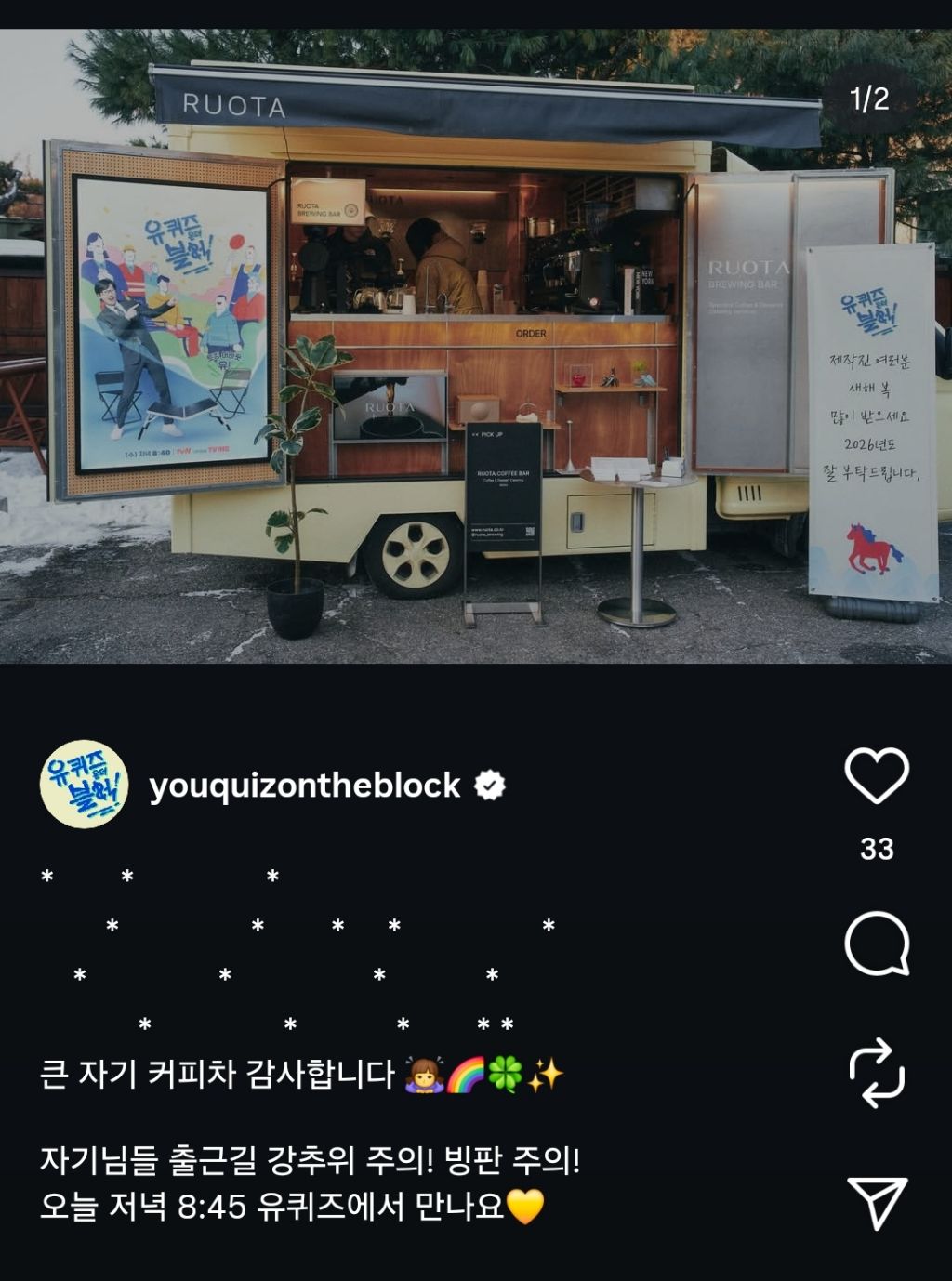 각 프로그램마다 제작진 스텝들 위한 커피차 결제 꾸준히 잘 챙기는거 보기 좋음