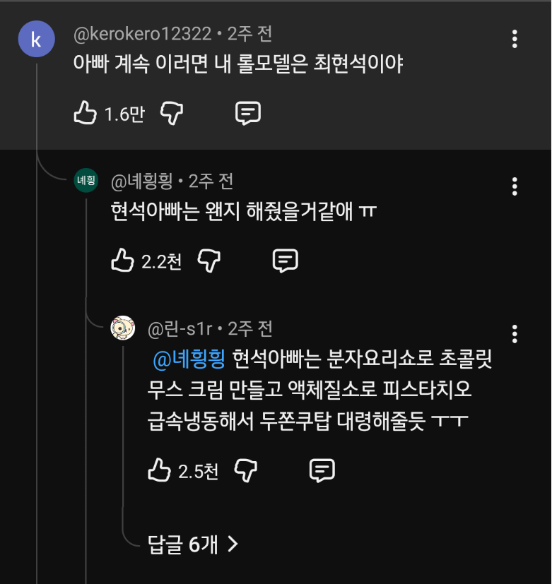 [배꼽의행방]내 취미 안성재 두쫀쿠 댓글 보기.jpg 작성자마이마운틴|작성시간26.01.14|조회수24,034 목록 댓글 30 글자크기 작게가 글자크기 크게가 출처: https://theqoo.net/square/4057901347 다음검색 현재 게시글 추가 기능 열기 북마크 공유하기 신고 센터로 신고 댓글 댓글 30 댓글쓰기 답글쓰기 댓글 리스트 작성자푸데데 | 작성시간 26.01.14 비정한부성앸ㅋㅋㅋㅋㅋㅋㅋㅋ 작성자Fix you | 작성시간 26.01.14 따뜻한 악플 ㅋㅋㅋㅋㅋㅋㅋ 작성자룰루랄랄라룰 | 작성시간 26.01.14 현석아빠 개웃김 아ㅠㅠㅜㅠ 작성자내똥내싼 | 작성시간 26.01.14 사람들 진짜.왜케웃겨..? 작성자밀국여시 | 작성시간 26.01.21 너 무 웃 겨 댓글 전체보기