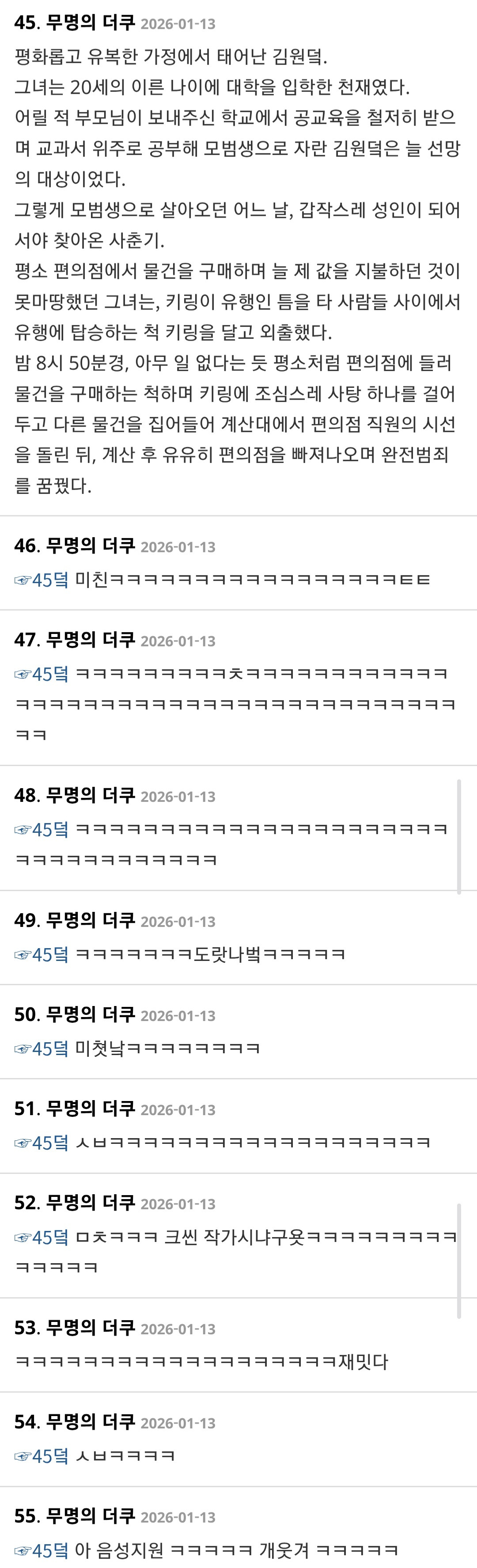 [흥미돋]크라임씬 시청자들 난리난 글 ㅋㅋㅋㅋㅋㅋㅋㅋㅋㅋㅋㅋㅋㅋ.jpg 작성자홍게라면|작성시간26.01.14|조회수15,043 목록 댓글 18 글자크기 작게가 글자크기 크게가 출처: https://www.dmitory.com/issue/396681095 다음검색 현재 게시글 추가 기능 열기 북마크 공유하기 신고 센터로 신고 댓글 댓글 18 댓글쓰기 답글쓰기 댓글 리스트 작성자복권그것은내꿈과희망 | 작성시간 26.01.14 어머 세상에 ㅋㅋㅋ 작성자아리스토텔레마케팅 | 작성시간 26.01.14 왜이렇게 잘해 다들ㅋㅋㅋㅋ 작성자Parade | 작성시간 26.01.14 ㅋㅋㅋㅋㅋ새웃기넼ㅋㅋㅋㅋㅋㅋㅋㅋㅋㅋㅋㅋㅋㅋㅋㅋ 작성자대법 | 작성시간 26.01.14 아무 일 없다는 듯 평소처럼 편의점에 들러 <이게 찐이다ㅋㅋㅋㅋㅋㅋㅋㅋㅋㅋㅋㅋㅋ 작성자고전파O | 작성시간 26.01.14 유유히 빠져나오며 완전범죄를 꿈 꿨 다 댓글 전체보기