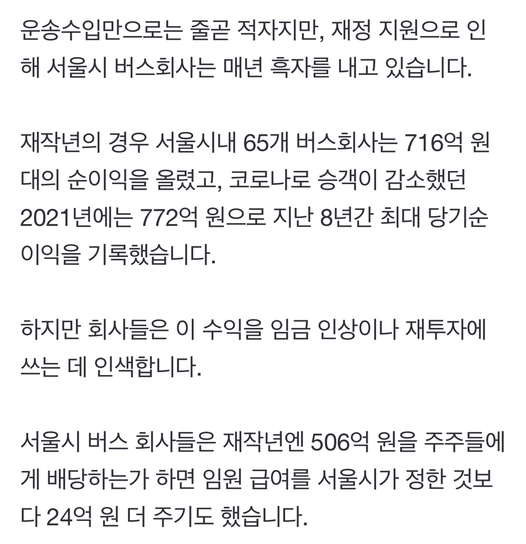 그게 다 버스회사 주주들 배당으로 스윽 빠졌다는거네 ㅋㅋㅋ