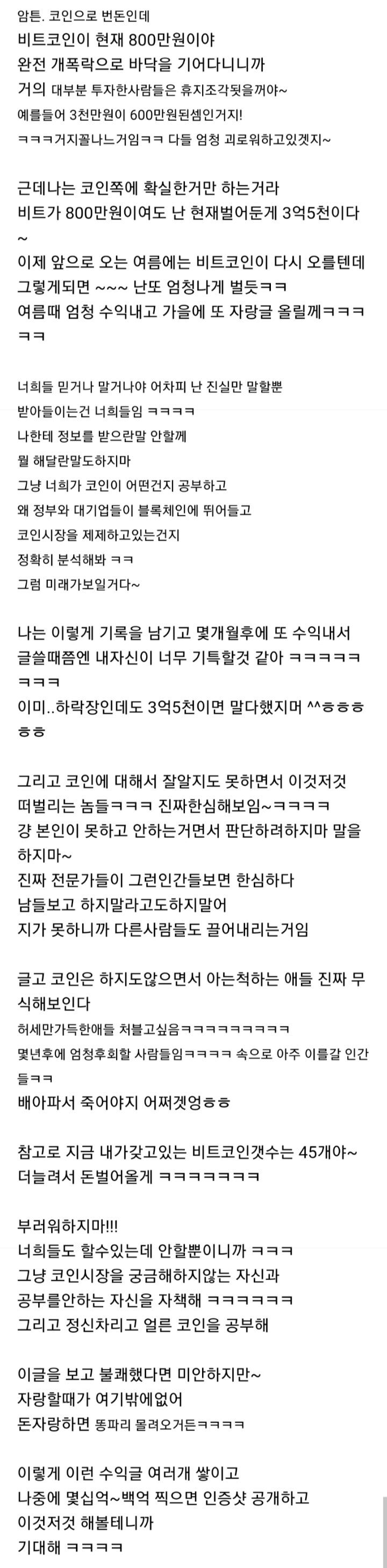 [스크랩] [흥미돋]작년에 500으로 2천만원 벌었고 지금 3억 5천 찍었따~ 작성자r=vd평화로운26년|작성시간26.01.14|조회수164,673 목록 댓글 204 글자크기 작게가 글자크기 크게가 말투가 너무 개싹바가지라 활중 당했는데ㅋㅋㅋㅋㅋㅋ한번 떡락하고 나서 다시 오를거라는것도 예측ㅋㅋㅋ싹바가지 없는 천사였던거임,,^^ 다음검색 스크랩 원문 : 쭉빵카페 현재 게시글 추가 기능 열기 북마크 공유하기 신고 센터로 신고 댓글 댓글 204 댓글쓰기 답글쓰기 댓글 리스트 작성자체리같은내얼굴 | 작성시간 26.01.20 한 번 더 와주라 제발 작성자캠든타운 | 작성시간 26.01.22 제발 한번만 더 와줘 작성자코코넛스무디 | 작성시간 26.01.23 돌아와.. 작성자젭라참아 | 작성시간 26.02.04 귀인 작성자텁텁 | 작성시간 26.02.13 45개.... 지금은 더 많겠지????? 댓글 전체보기