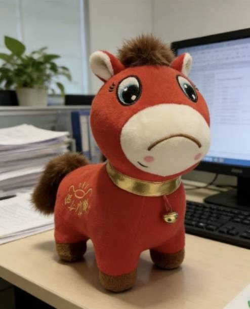이 인형은 말의 해를 맞아 생산된 것으로 원래 웃는 얼굴로 제작될 예정이었으나