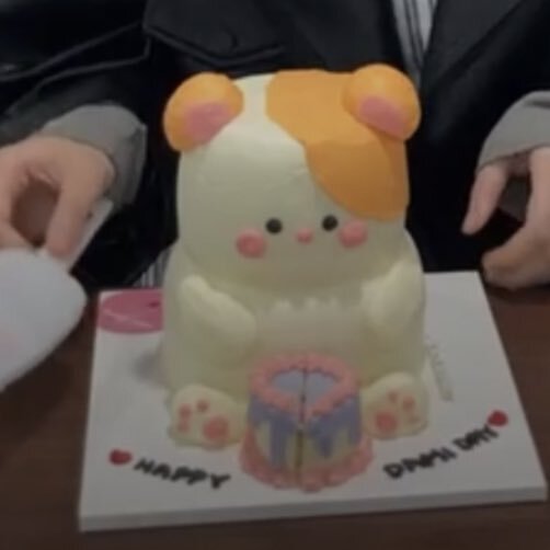 차마 햄스터 머리를 자를 순 없어서 앞에 있는 케이크 자름..