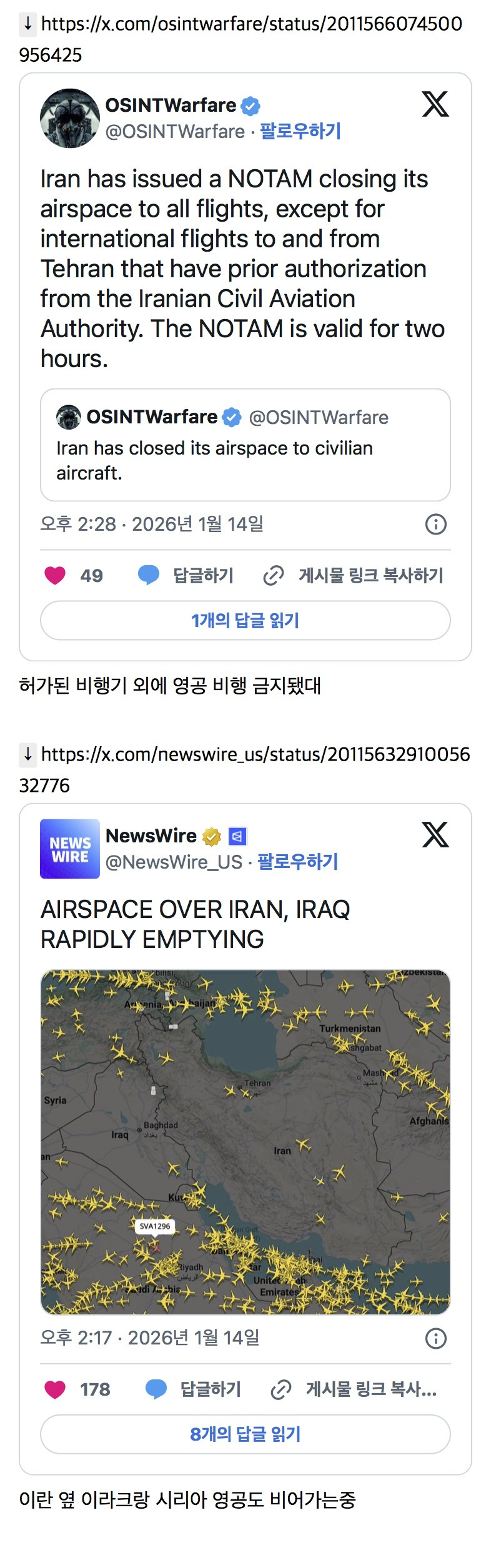 [기타]이란, 앞으로 2시간 동안 영공 폐쇄 작성자Sunmoonstar02|작성시간26.01.15|조회수23,536 목록 댓글 24 글자크기 작게가 글자크기 크게가 출처: https://theqoo.net/square/4061877912더쿠 - 이란, 앞으로 2시간 동안 영공 폐쇄여기를 눌러 링크를 확인하세요theqoo.net 다음검색 현재 게시글 추가 기능 열기 북마크 공유하기 신고 센터로 신고 댓글 댓글 24 댓글쓰기 답글쓰기 댓글 리스트 작성자나는부자된다 | 작성시간 26.01.15 지구촌 진짜 노답이네 작성자새우피자꽁지 | 작성시간 26.01.15 어휴ㅠㅠㅠㅠ 작성자모모@ | 작성시간 26.01.15 무섭다...무슨 짓을 하려고... 작성자혼자잘살아보자고 | 작성시간 26.01.15 미친새끼들아..... 작성자트벅트벅 | 작성시간 26.01.15 왜 ??!! 진짜 개무섭네 댓글 전체보기