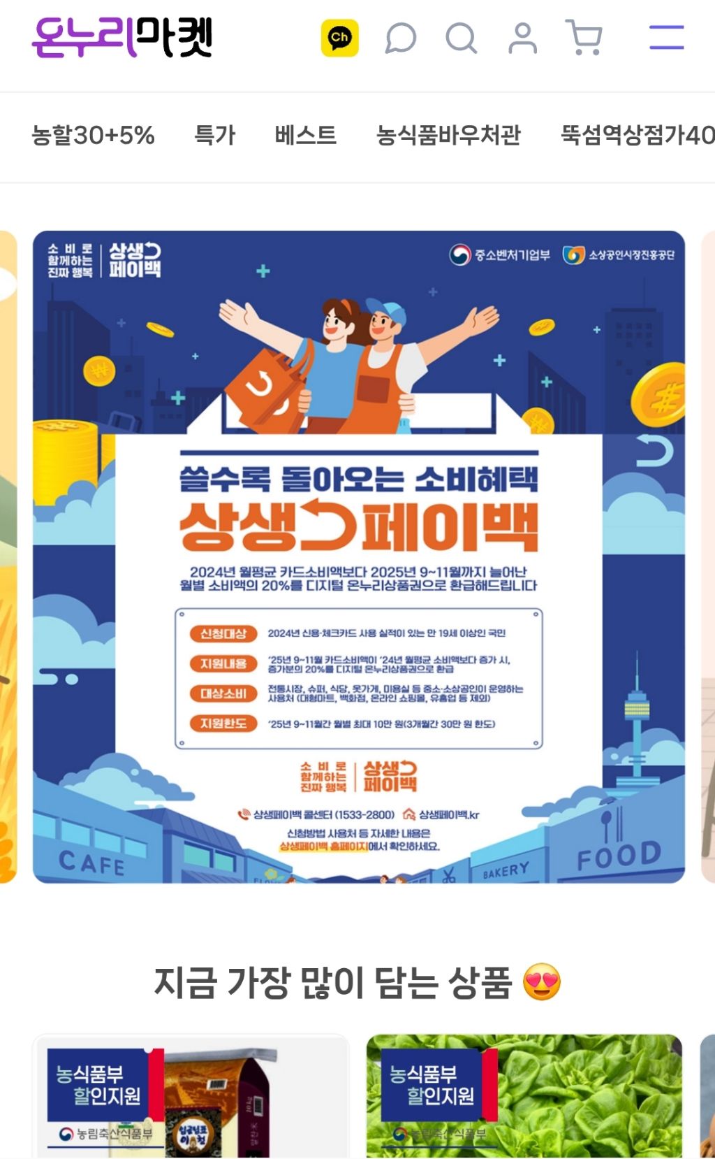 앱 → 혜택/이벤트 메뉴 들어가면 ‘상생페이백’ 따로 뜸