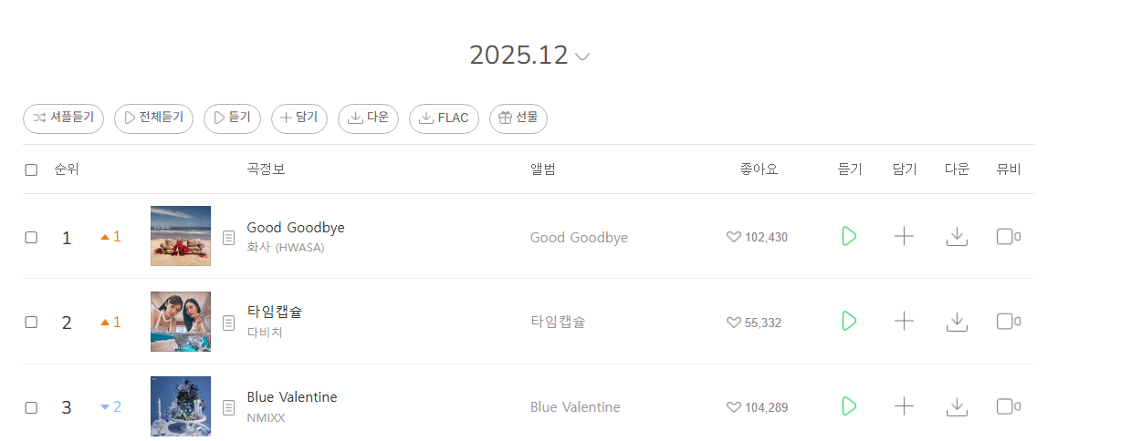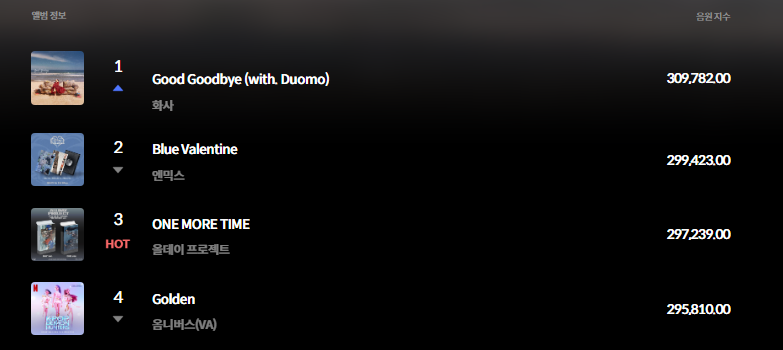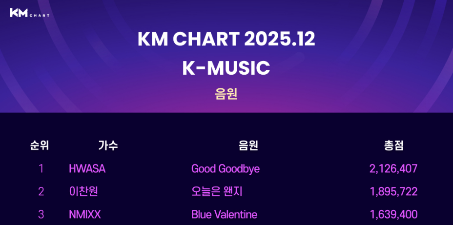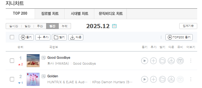 검색해서 나오는 모든 음원차트(멜론,지니,벅스,한터차트,KM차트등등) 거의 다 월간 1위했더라