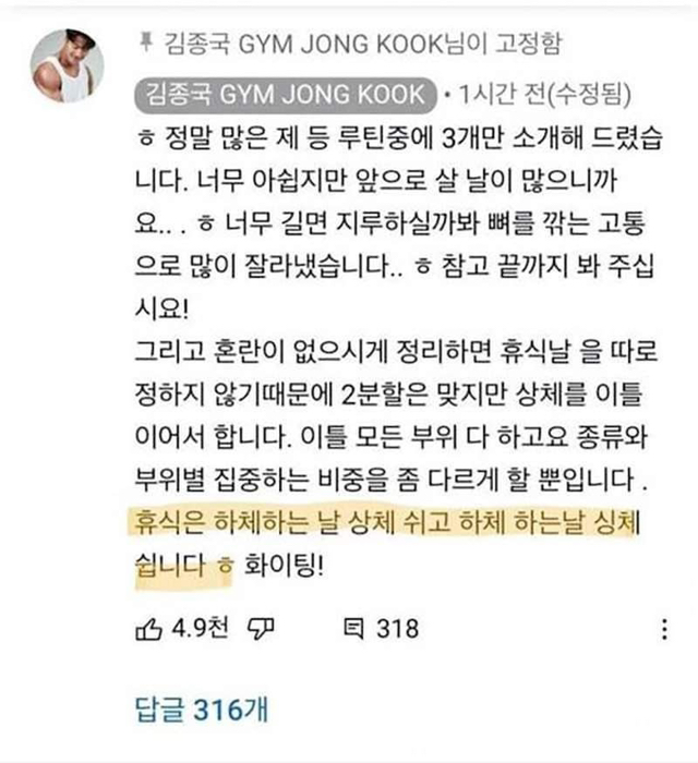 [스크랩] [흥미돋]헬스 유튜버 김종국이 운동 쉬는 날...jpg 작성자Night|작성시간26.01.15|조회수11,650 목록 댓글 6 글자크기 작게가 글자크기 크게가 💪💪💪 다음검색 스크랩 원문 : 도탁스 (DOTAX) 현재 게시글 추가 기능 열기 북마크 공유하기 신고 센터로 신고 댓글 댓글 6 댓글쓰기 답글쓰기 댓글 리스트 작성자가라갇혀확갇혀 | 작성시간 26.01.15 당신은 가수잖아요… 작성자두바이쫀득동현 | 작성시간 26.01.15 전체적으로 쉬어야 쉬는 거라고 하는 거잖아요 작성자gemini. | 작성시간 26.01.15 당신은 가수잖아요… 작성자체력이 짱짱한 돼지가 될거야 | 작성시간 26.01.15 광기 그 자체 ㅋㅋㅋㅋㅋㅋ 작성자치킨과바베큐사이 | 작성시간 26.01.15 운동 유튜버ㅋㅋㅋㅋㅋㅋㅋㅋㅋ 댓글 전체보기