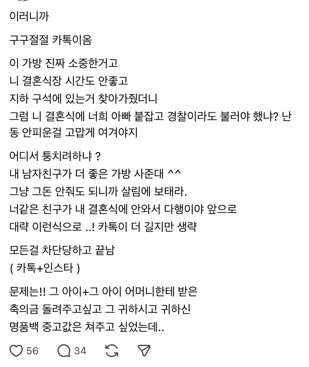 작성자뻐끔뻐끔 작성시간 26.01.16 저럴거면 명품가방 왜 들고다님?