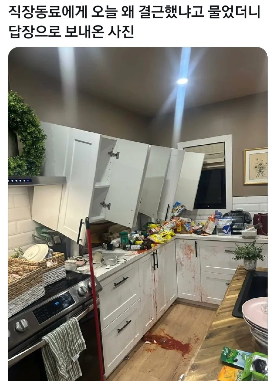 작성자뜌어 작성시간 26.01.22 와 근데 우리집도 예전에 상부장 떨어져서 접시고 컵이고 다 박살났었어서 남일같지않음... 피해서 망정이지 부딪혔으면 죽었겠다 싶었음