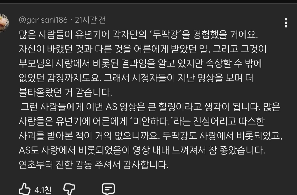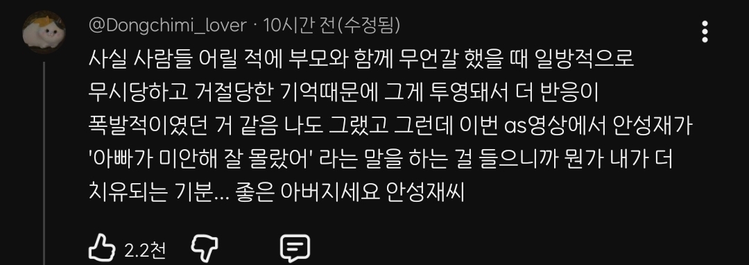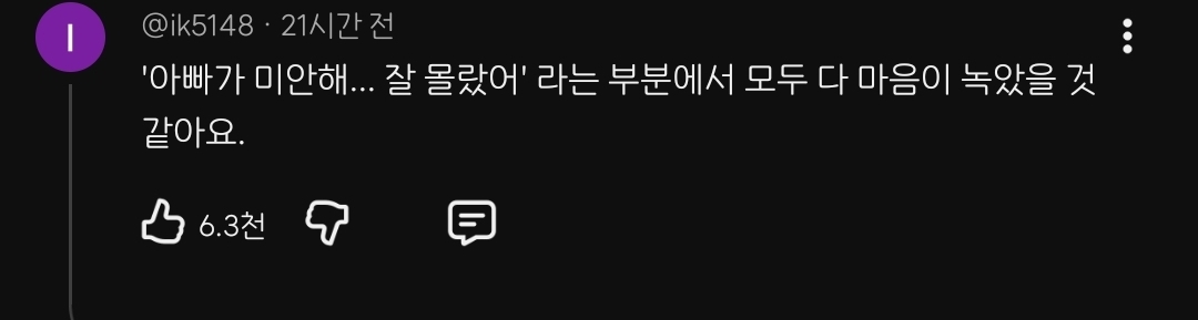 작성자쓰레기는 쓰레기통에 작성시간 26.01.16 진짜 자라면서 단 한번도 아빠한테 저런 말을 들어본 적이 없음