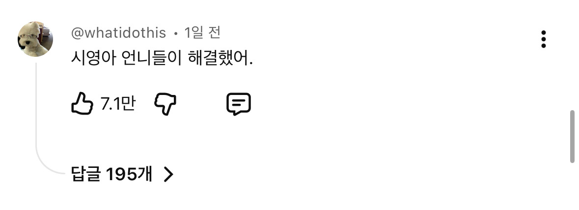 [흥미돋]500만 돌파한 안성재 두딱강 두란말이 a/s영상 작성자자경이친구|작성시간26.01.16|조회수22,187 목록 댓글 54 글자크기 작게가 글자크기 크게가 출처: https://youtu.be/9PGim3h5Uz8유튜브 유명 컨텐츠들 많지만국내 컨텐츠 조회수 이정도로 빨리 올라가는건 흔치 않아서 신기해서 퍼옴 다음검색 현재 게시글 추가 기능 열기 북마크 공유하기 신고 센터로 신고 댓글 댓글 54 댓글쓰기 답글쓰기 댓글 리스트 작성자Green hexagon | 작성시간 26.01.16 시영이 너무 귀여워서 힐링임 ㅋㅋㅋㅋ 안성재 채널 중 유일하게 두딱강이랑 이것만 봄 ㅠ 작성자똑똑강아디이 | 작성시간 26.01.16 오백만ㄷㄷ 작성자갑자기야 | 작성시간 26.01.16 나어제도봄....시영이 차분해서 힐링영상 작성자일단해보기 | 작성시간 26.01.16 나도 궁금해서 봤어ㅋㅋㅋㅋㅋ 작성자물김치러버 | 작성시간 26.01.16 ㅋㅋㅋ귀엽더라 댓글 전체보기