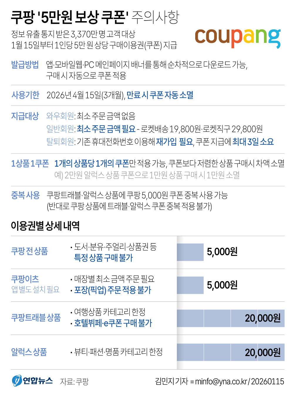 쿠팡이 개인정보유출에 대한 보상책으로 마련한 '5만원 구매이용권'을 15일부터 3천만명에게 순차적으로 지급한다.