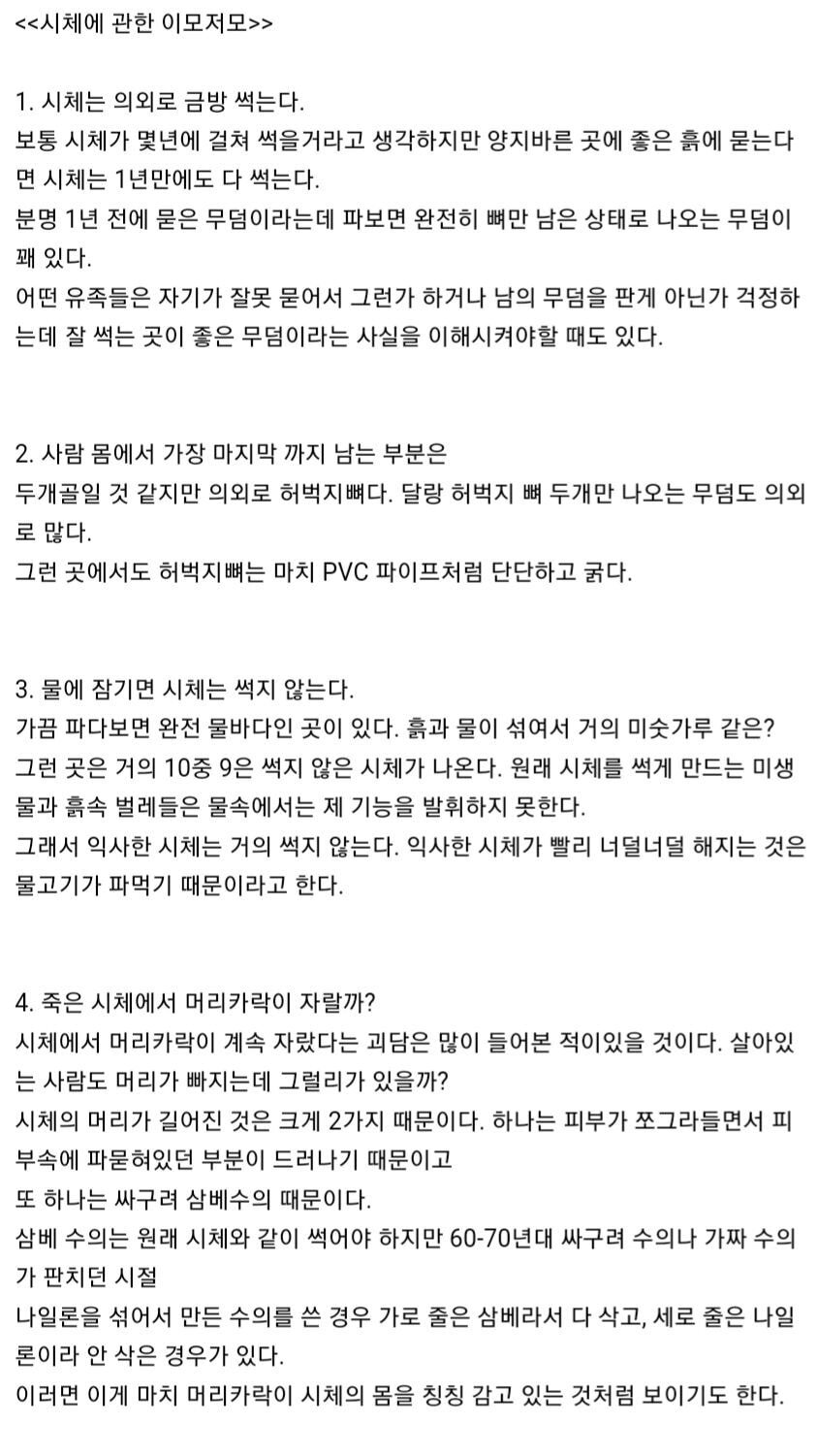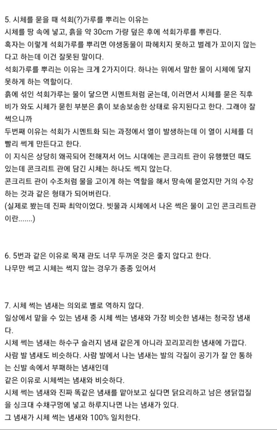 작성자별들을이어 작성시간 26.01.16 시체썩는냄새 진짜역하던데.. 할머니돌아가시고 6개월인가 후에 할아버지돌아가셔서 묘 옆에 새로 팔때 맡아봣어...