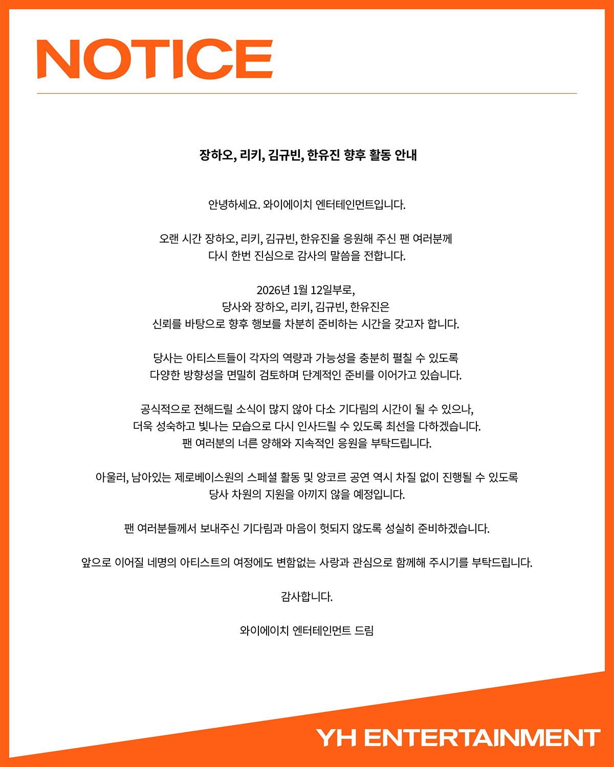 제베원 멤들중에는 처음으로 소식 뜬걸로 아는데 위에화는 이 넷 중심으로 차기 준비하는듯