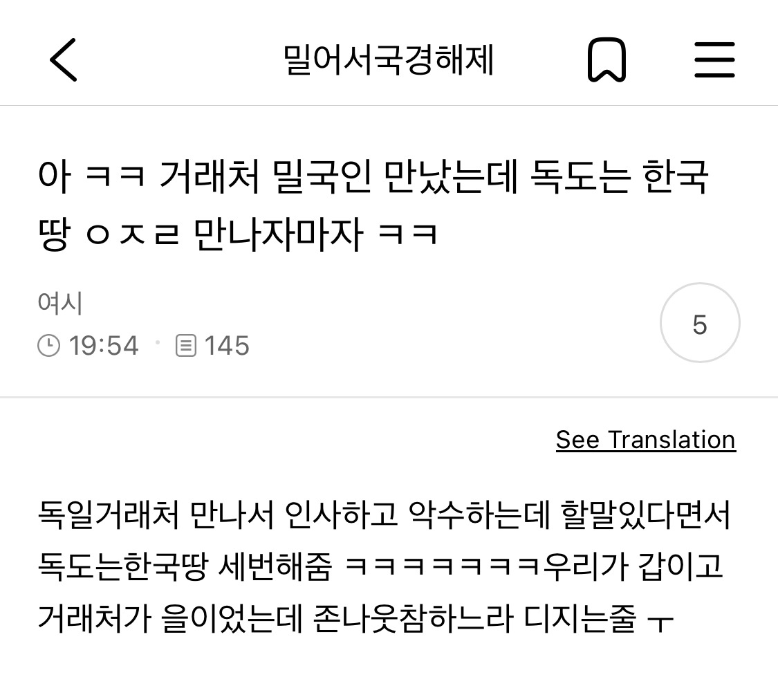 [배꼽의행방]밀국인 거래처 만났는데 만나자마자 독도는 한국땅 작성자(본인닉네임).|작성시간26.01.16|조회수21,770 목록 댓글 20 글자크기 작게가 글자크기 크게가 출처: https://m.cafe.daum.net/subdued20club/Sg1Q/2672038허락받고 퍼옴!돈벌자세 되있넼ㅋㅋㅋㅋㅋㅋㅋㅋㅋㅋㅋㅋㅋㅋㅋㅋ독기가득 사전조사 완 다음검색 현재 게시글 추가 기능 열기 북마크 공유하기 신고 센터로 신고 댓글 댓글 20 댓글쓰기 답글쓰기 댓글 리스트 작성자올해꼭스피또1등당첨될겁니다 | 작성시간 26.01.17 전범국 주제에 돈벌 자세는 되어있구나 작성자아아시럽추가 | 작성시간 26.01.17 준비가 철저하네 ㅋㅋㅋㅋㅋㅋㅋㅋ 작성자재극기부대행동대장 | 작성시간 26.01.17 거래 하시죠 작성자앙버터소금빵 | 작성시간 26.01.17 독~기 가득 작성자ㅎ ㅡ ㅎ | 작성시간 26.01.17 ㅋㅋㅋㅋㅋㅋㅌㅋㅋㅌㅌㅌㅌㅇㅌ 댓글 전체보기