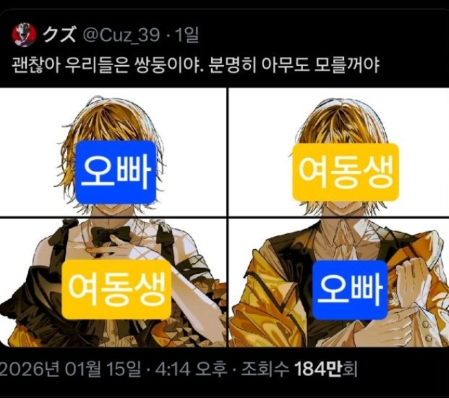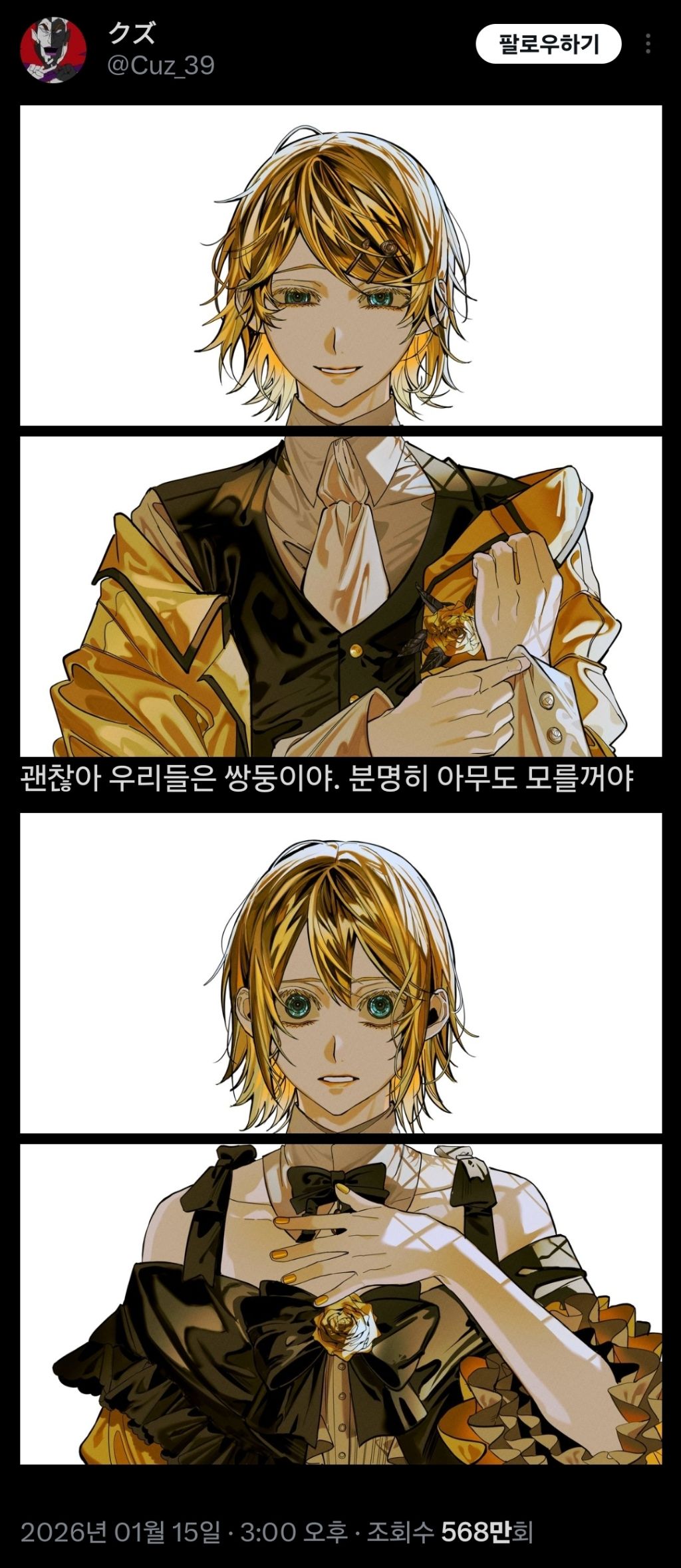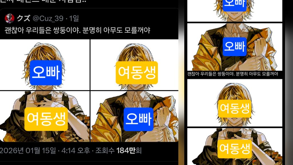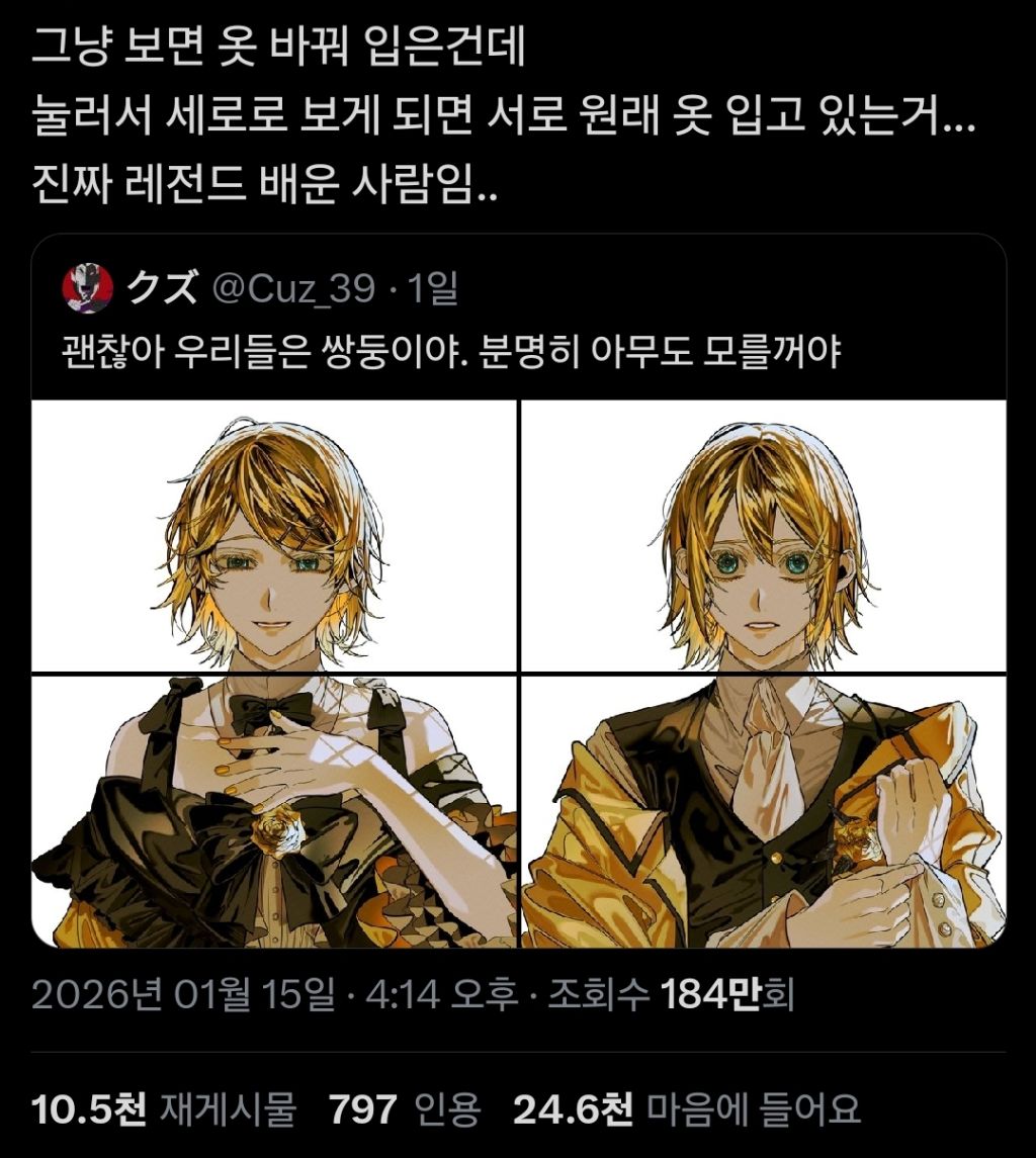 원래 이런 이미지 인데 이걸 원 트윗을 눌러서 보면 아래처럼 서로 옷이 바뀜