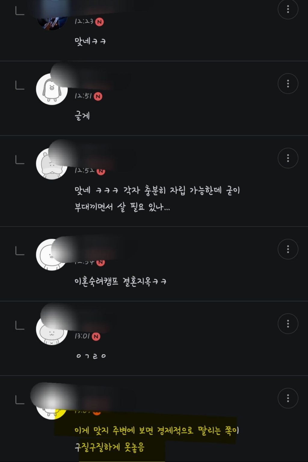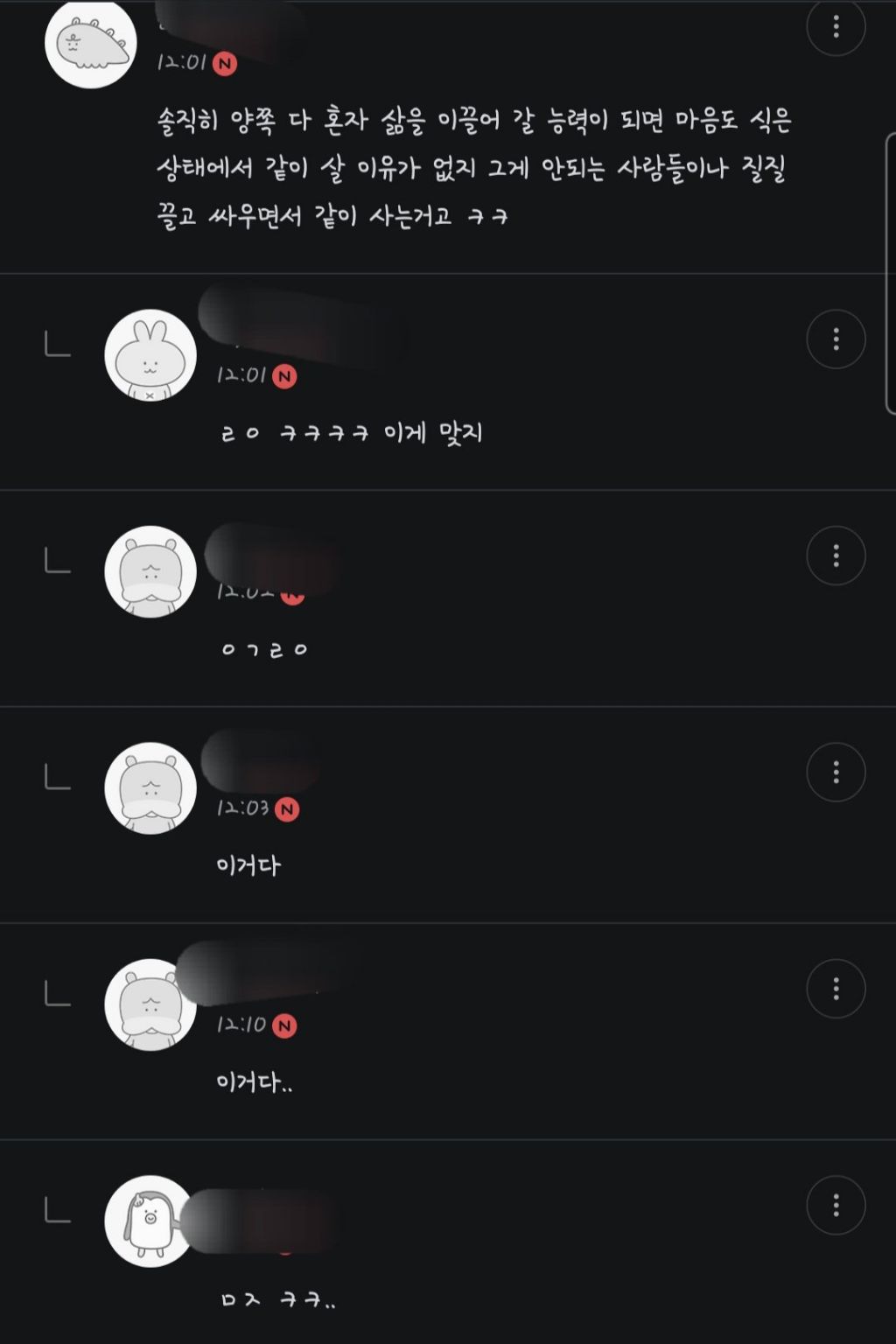작성자쿨쿨자기 작성시간 26.01.17 결혼자체가 너무 구식제도야..