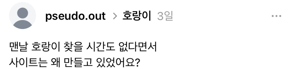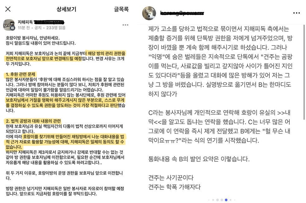 견주는 지해피독에게서 넘겨받은 호랑이방이 익명이었기에 버리고 현재는 새로 만들어진 실명방을 운영하고 있어