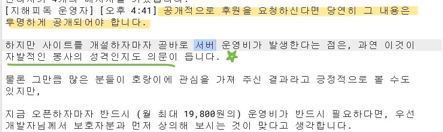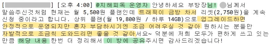 8월 21일 트래픽 문제로 후원 얘기 꺼냄 (견주X)